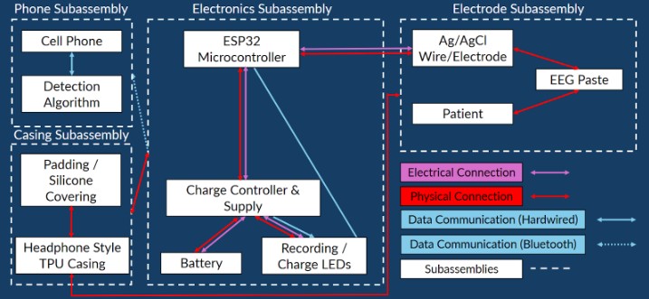To iterate upon our previous work, we decided to revamp our system architecture by packaging the electronics subassembly inside the device casing to improve user comfortability and reduce complications due to exposed wiring along the back of the neck.
